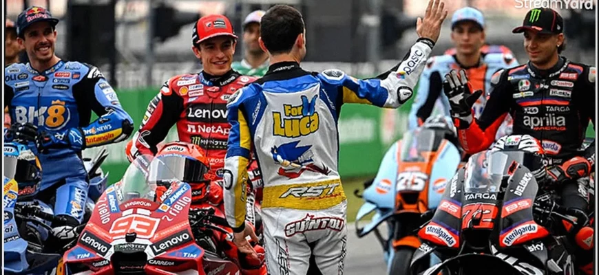Именно демонстрация этого комбинезона всем пилотам MotoGP, выстроившимся на стартовой решетке в Бурираме, служит началом этого 35-минутного видеоролика, полностью посвященного Гран-при Таиланда на международной трассе Чанг.